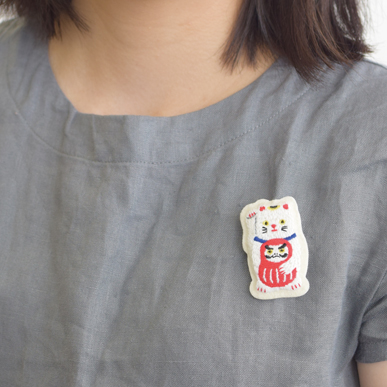 日本のおめでたい縁起物が刺繍のブローチになりました。