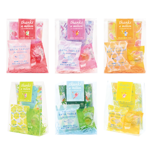 バスポップが入ったカラフルな入浴品3点入りのギフト。