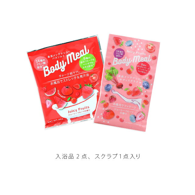 入浴品2点とスクラブ1点のセット。お風呂で素肌をボディケア。