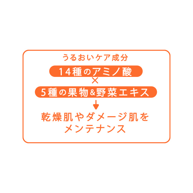 保湿成分に14種のアミノ酸と5種の果物&野菜エキスを配合。