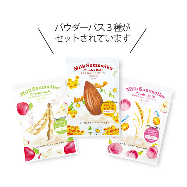 3種の香りを楽しめるミルクソムリエパウダーバスのアソートセット。
